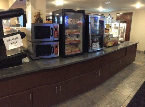 We have a deli on-site that offers wide food selection. We offer fresh hot food to go & pizzas.